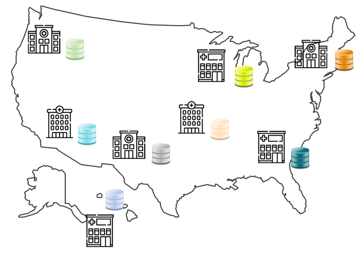 In recent years, the common solution to these issues has been the creation of Common Data Models (CDMs). A Common Data Model is an agreed-upon structure and format for databases containing clinical information, into which diverse organizational EHR databases can be standardized for research purposes. Even so, healthcare organizations are reluctant to share their data directly, because the risks associated with data breaches for protected health information (PHI) defined by Health Information Portability and Accountability Act (HIPAA) are high. As a result, several groups of healthcare and research organizations have formed federated research networks, where each organization in a network translates some subset of its data into an agreed-upon common data model, and affiliated researchers can then write queries intended for data in that format. Examples of such federated networks include PCORNet, i2b2, and OHDSI, each of which utilizes their own common data model. In a federated model, data queries are generated by researchers, but executed locally by the data owners and only summarized or specifically requested results are sent back to researchers. This ensures protection for the patient data (which never leaves the boundaries of any individual organization), but prevents exploratory data investigation and other techniques (like many machine-learning methods) which require direct access to the totality of the data.