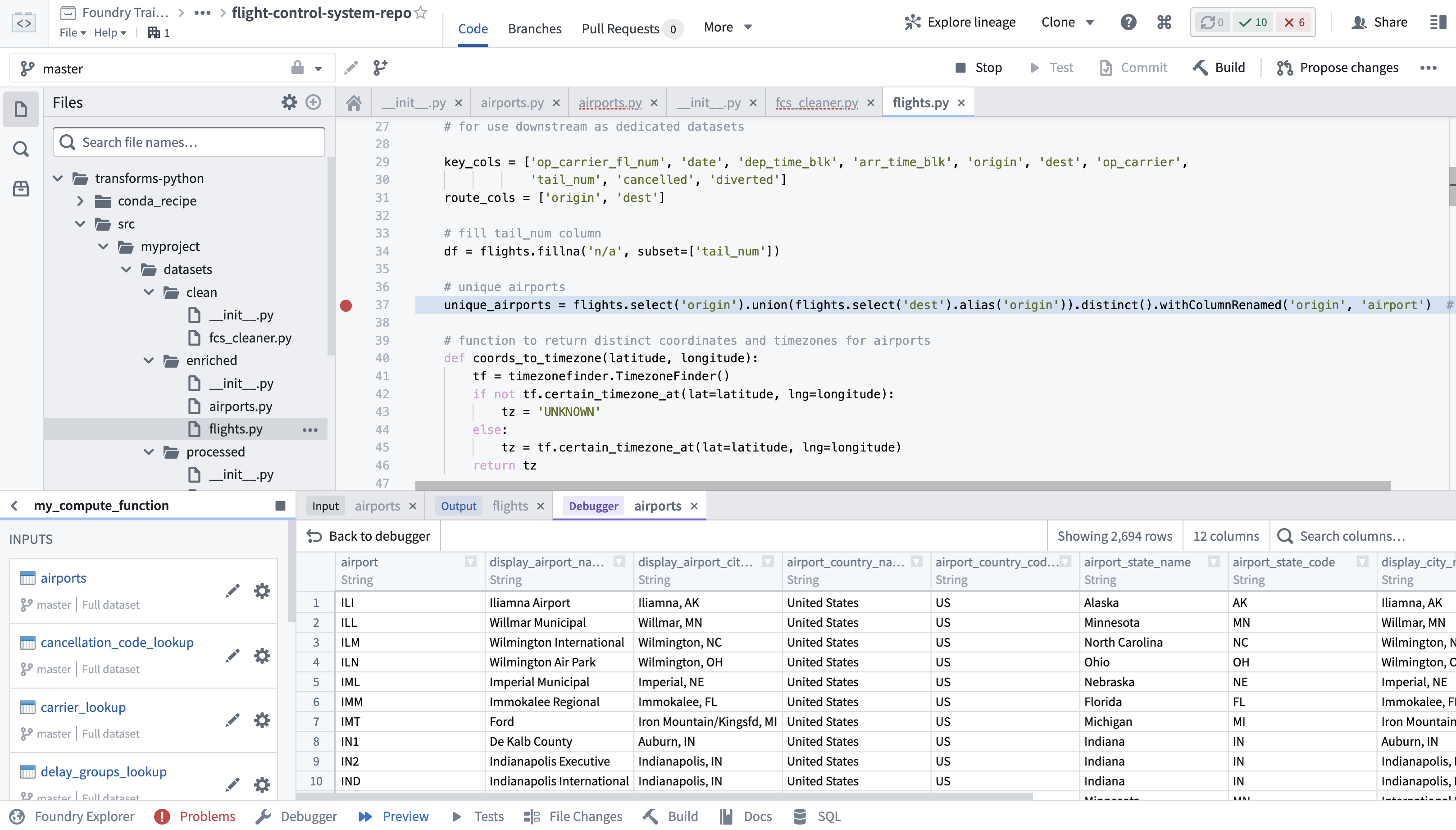 Code Repositories shown in Figure 8.13 are available within the Enclave and should be used when you wish to share code across multiple Code Workbooks or projects, or need to develop a robust production pipeline. Code Repositories do not support data visualization, coding in R, or point-and-click templates. Additional differences between Code Repositories and Code Workbooks can be found in the Foundry Documentation. Palantir has also compiled several tutorials on how to create, publish, and maintain Code Repositories .